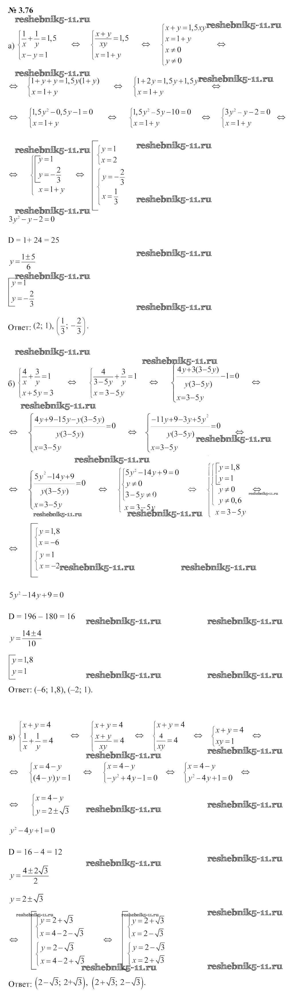 Готовая домашняя работа с ответами по Алгебре за 9 класс Арефьева, Пирютко Учебник Народная асвета 2019 - Задания 3.76