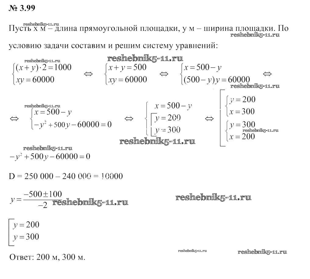 Готовая домашняя работа с ответами по Алгебре за 9 класс Арефьева, Пирютко Учебник Народная асвета 2019 - Задания 3.99