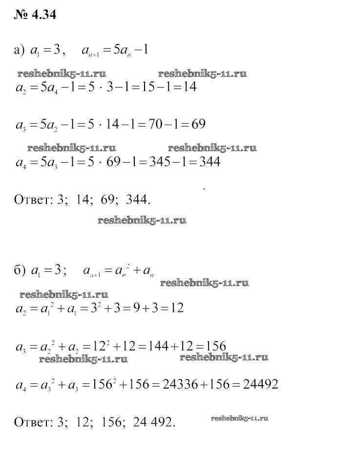 Готовая домашняя работа с ответами по Алгебре за 9 класс Арефьева, Пирютко Учебник Народная асвета 2019 - Задания 4.34