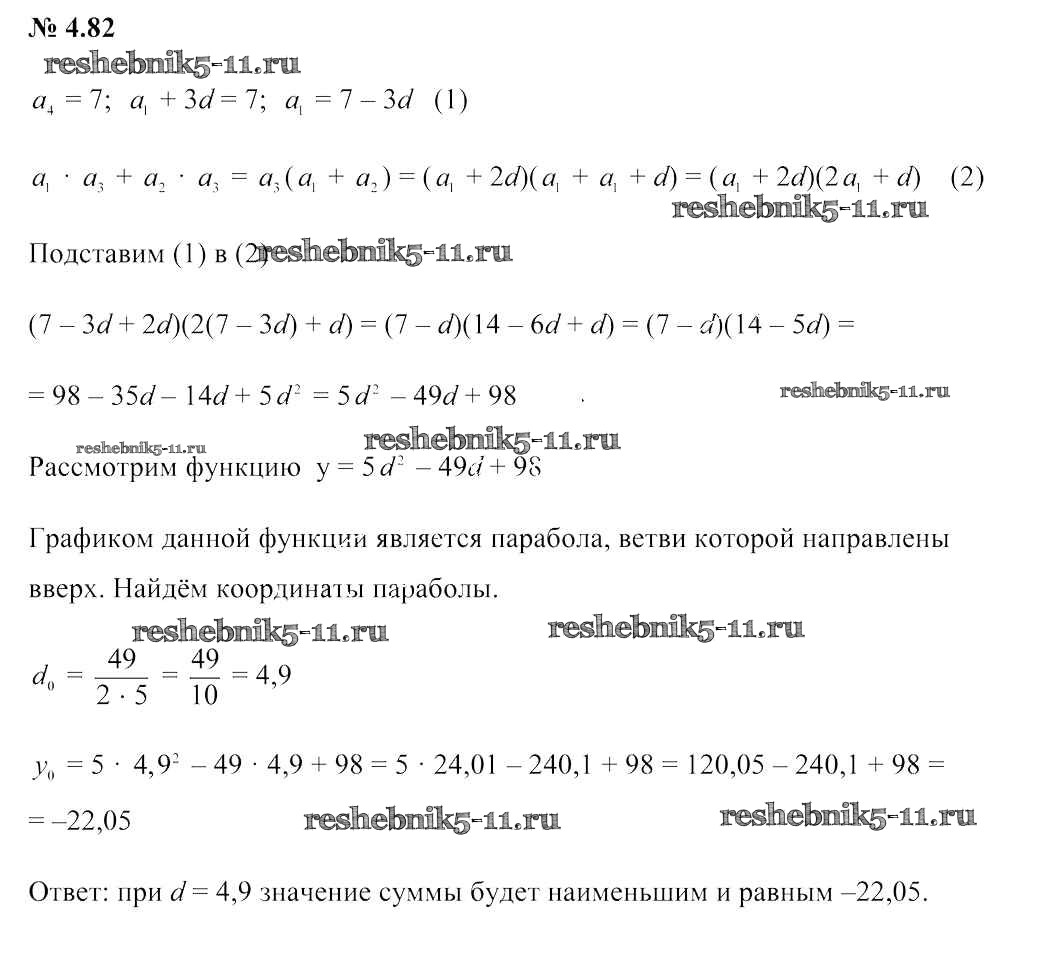 Готовая домашняя работа с ответами по Алгебре за 9 класс Арефьева, Пирютко Учебник Народная асвета 2019 - Задания 4.82