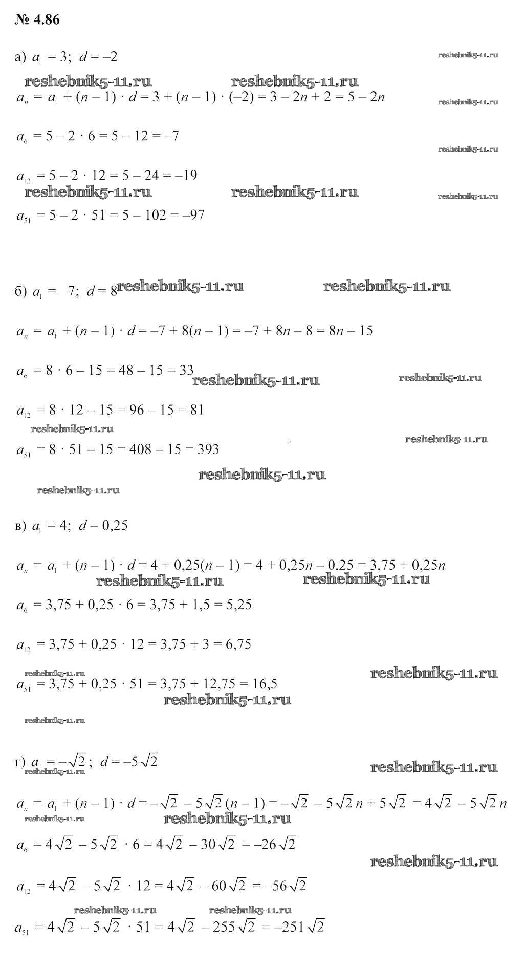 Готовая домашняя работа с ответами по Алгебре за 9 класс Арефьева, Пирютко Учебник Народная асвета 2019 - Задания 4.86