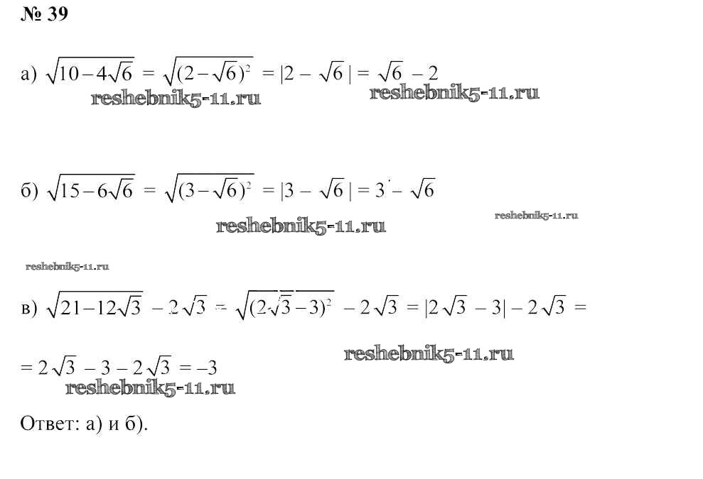 Готовая домашняя работа с ответами по Алгебре за 9 класс Арефьева, Пирютко Учебник Народная асвета 2019 - Итоговое повторение 39
