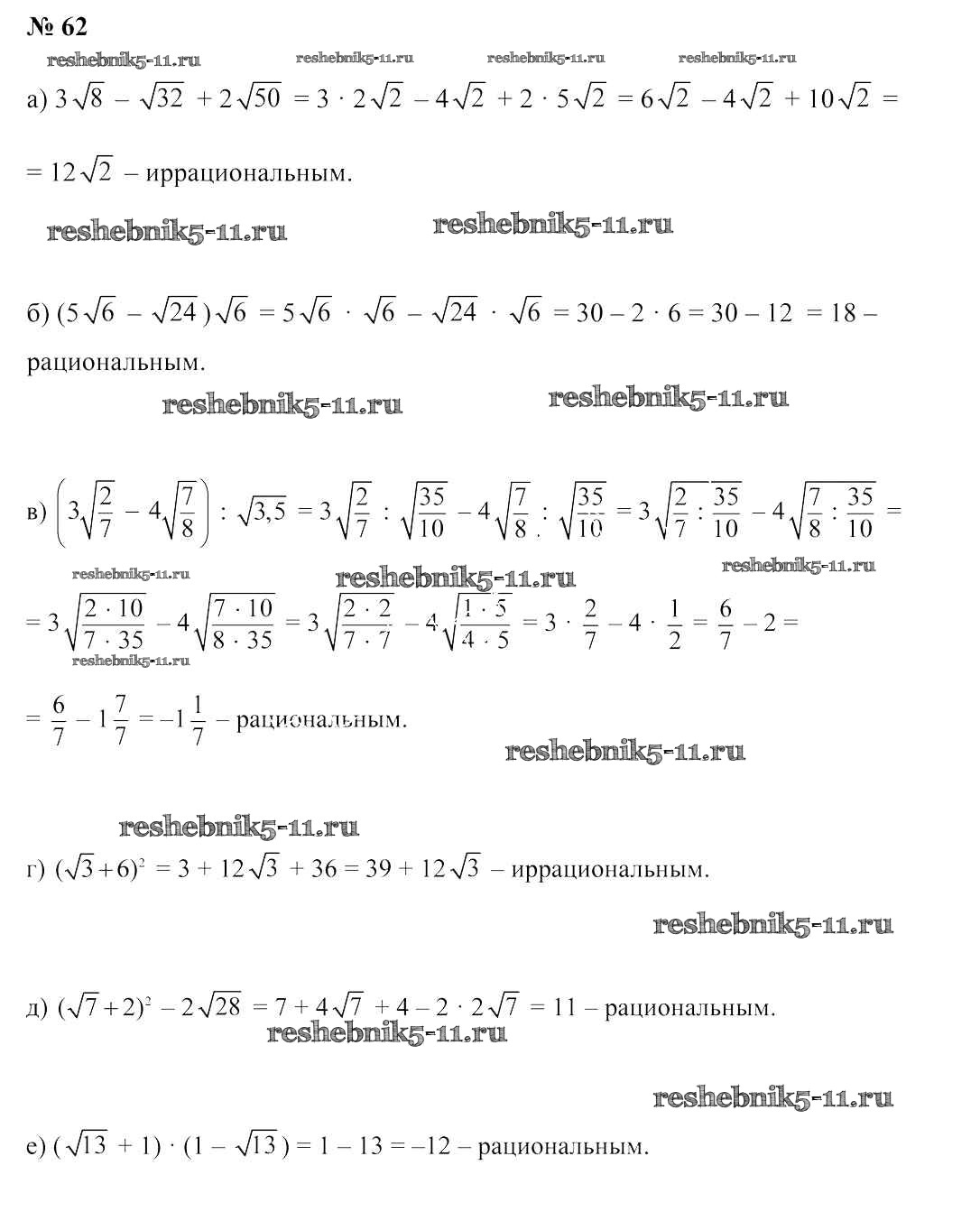 Готовая домашняя работа с ответами по Алгебре за 9 класс Арефьева, Пирютко Учебник Народная асвета 2019 - Итоговое повторение 62