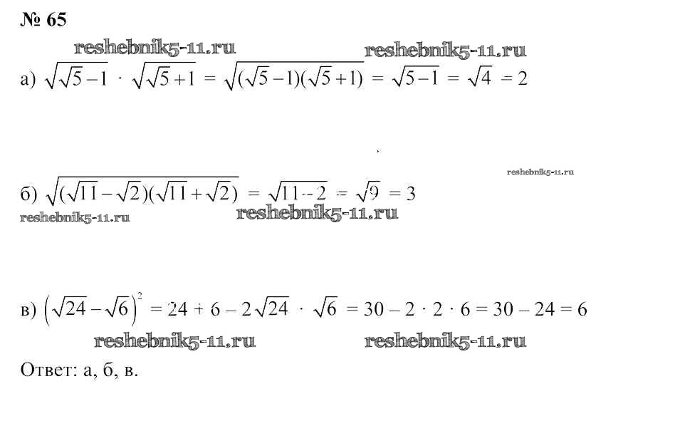 Готовая домашняя работа с ответами по Алгебре за 9 класс Арефьева, Пирютко Учебник Народная асвета 2019 - Итоговое повторение 65
