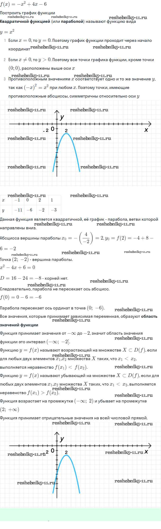 Готовая домашняя работа с ответами по Алгебре за 9 класс Мерзляк, Полонский, Якир Рабочая тетрадь Часть 1, 2 Вентана-граф 2019 ФГОС - §11. Квадратичная функция, её график и свойства 6