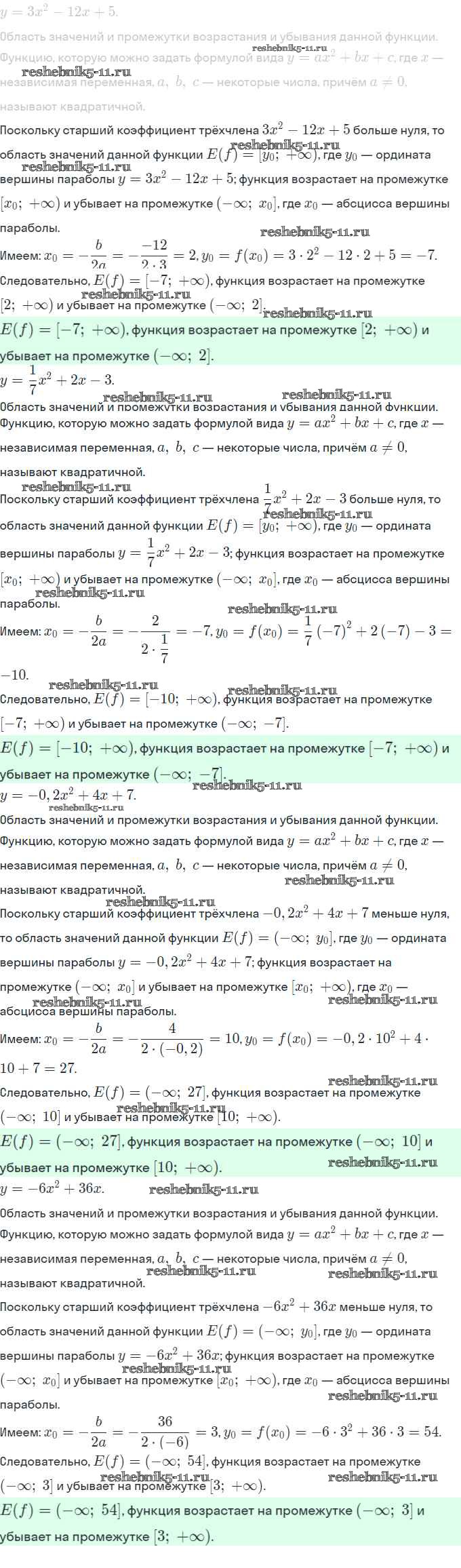 Готовая домашняя работа с ответами по Алгебре за 9 класс Мерзляк, Полонский, Якир Рабочая тетрадь Часть 1, 2 Вентана-граф 2019 ФГОС - §11. Квадратичная функция, её график и свойства 7
