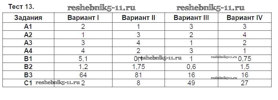 Готовая домашняя работа с ответами по Алгебре за 9 класс Глазков, Варшавский, Гаиашвили Тесты УМК Экзамен 2011 ФГОС - Тесты тест №13