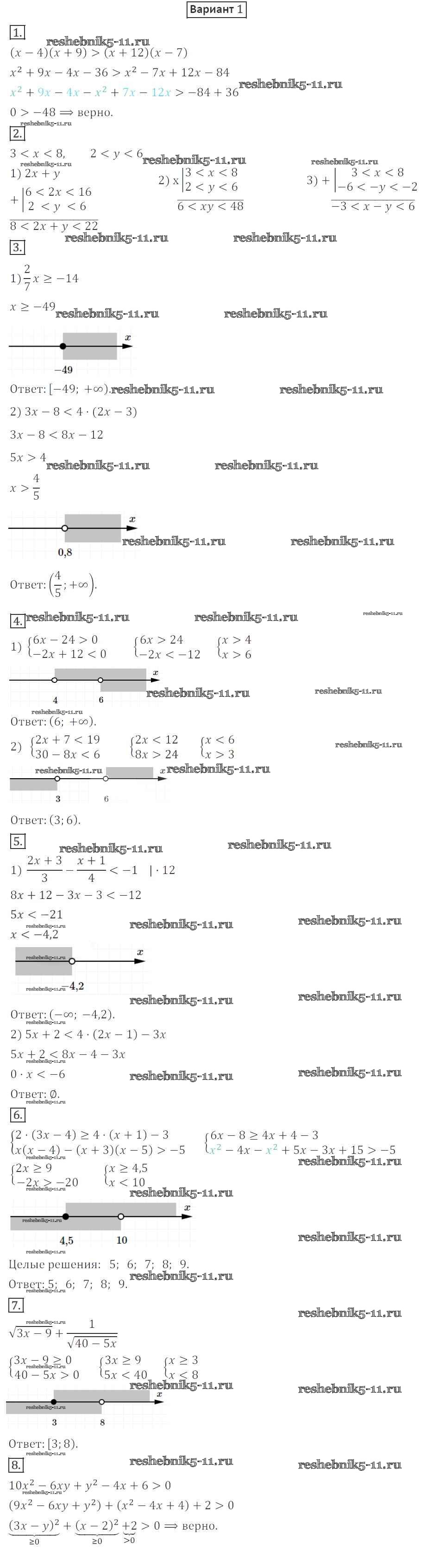 Готовая домашняя работа с ответами по Алгебре за 9 класс Мерзляк, Полонский, Рабинович Дидактические материалы Алгоритм успеха Вентана-граф 2017 ФГОС - КР-1 1