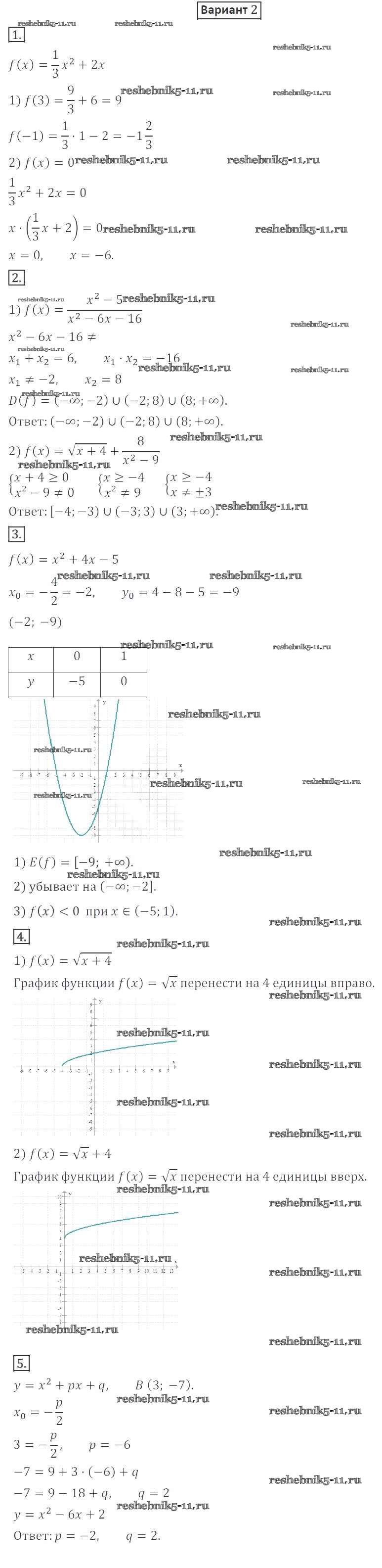 Готовая домашняя работа с ответами по Алгебре за 9 класс Мерзляк, Полонский, Рабинович Дидактические материалы Алгоритм успеха Вентана-граф 2017 ФГОС - КР-2 2