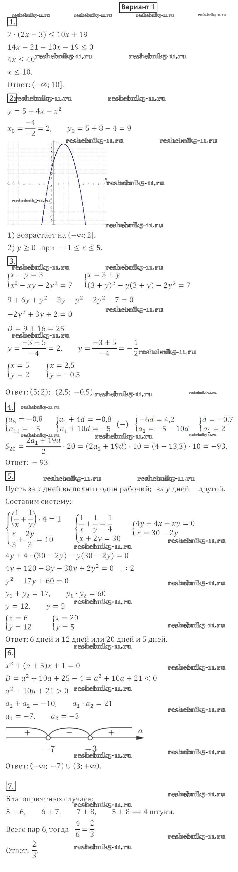 Готовая домашняя работа с ответами по Алгебре за 9 класс Мерзляк, Полонский, Рабинович Дидактические материалы Алгоритм успеха Вентана-граф 2017 ФГОС - КР-6 1