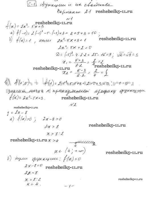 Решебник / алгебра / самостоятельная работа / ср-1. вариант / А1