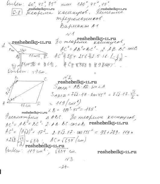 Решебник / геометрия / к учебнику Атанасяна / самостоятельная работа / ср-8. вариант / А1