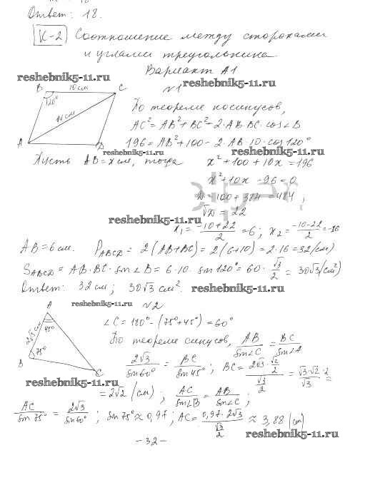 Решебник / геометрия / к учебнику Атанасяна / контрольная работа / кр-2. вариант / А1