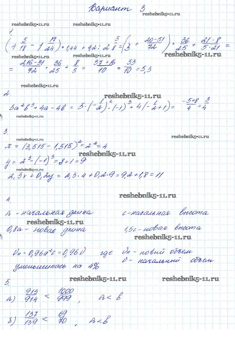 Готовая домашняя работа с ответами по Алгебре за 7, 8, 9 класс Мордкович Контрольные работы Углубленный уровень Мнемозина 2016 ФГОС - КР-1. Варианты 3