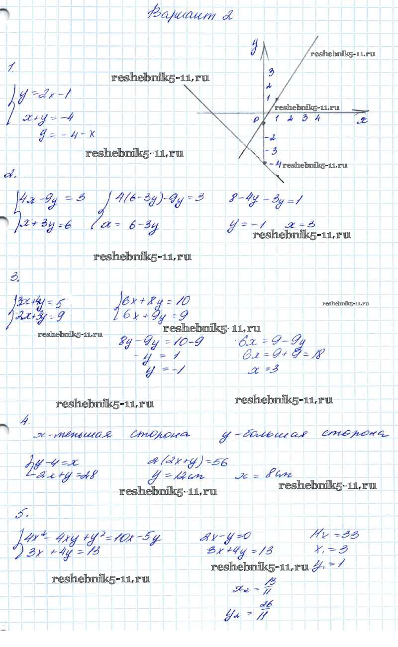 Готовая домашняя работа с ответами по Алгебре за 7, 8, 9 класс Мордкович Контрольные работы Углубленный уровень Мнемозина 2016 ФГОС - КР-10. Варианты 2