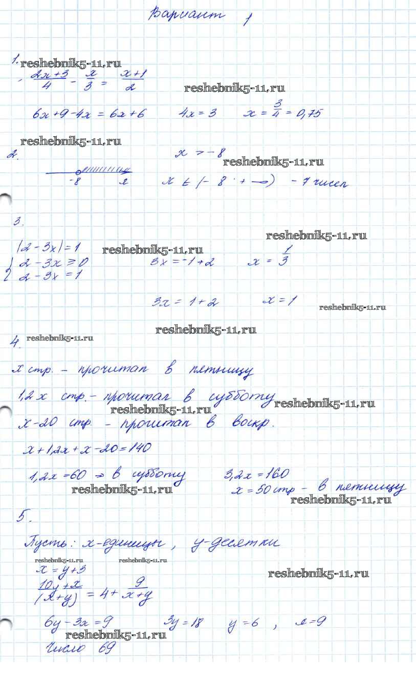 Готовая домашняя работа с ответами по Алгебре за 7, 8, 9 класс Мордкович Контрольные работы Углубленный уровень Мнемозина 2016 ФГОС - КР-2. Варианты 1