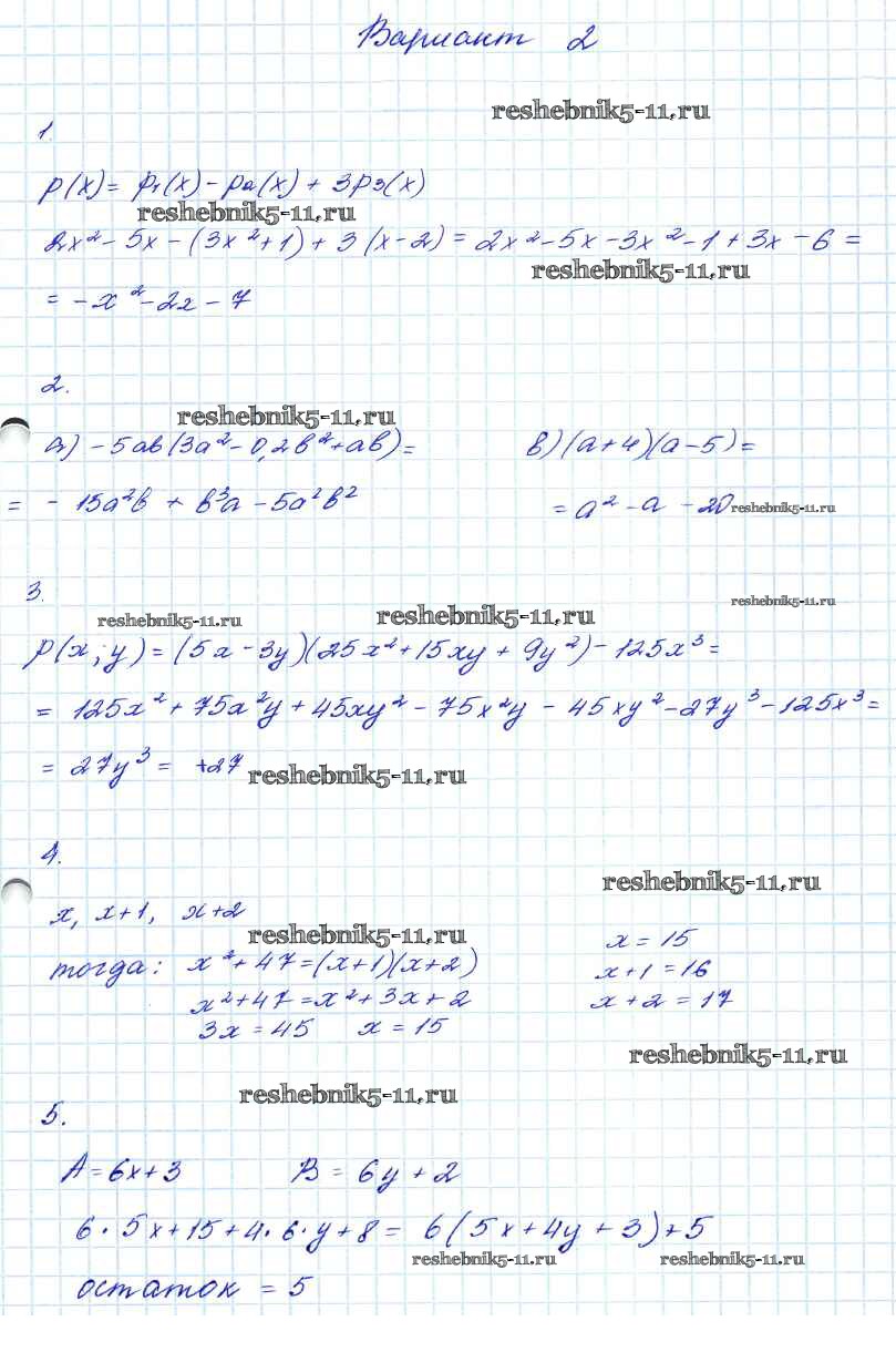 Готовая домашняя работа с ответами по Алгебре за 7, 8, 9 класс Мордкович Контрольные работы Углубленный уровень Мнемозина 2016 ФГОС - КР-5. Варианты 2