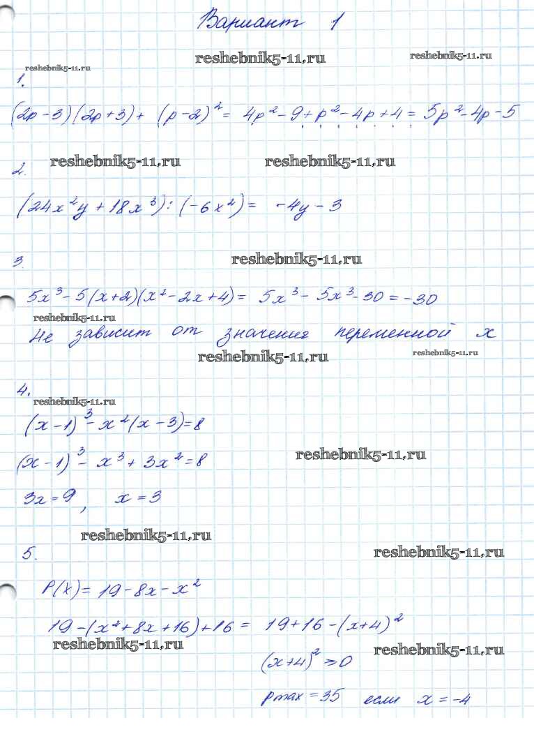 Готовая домашняя работа с ответами по Алгебре за 7, 8, 9 класс Мордкович Контрольные работы Углубленный уровень Мнемозина 2016 ФГОС - КР-6. Варианты 1