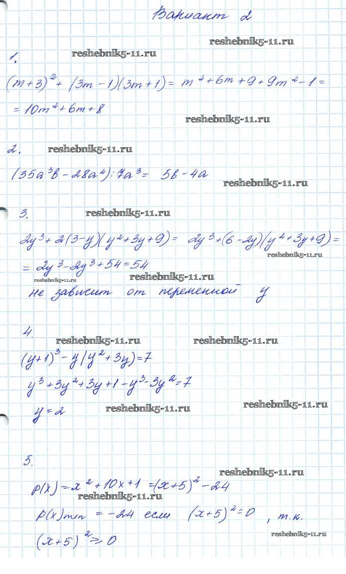Готовая домашняя работа с ответами по Алгебре за 7, 8, 9 класс Мордкович Контрольные работы Углубленный уровень Мнемозина 2016 ФГОС - КР-6. Варианты 2
