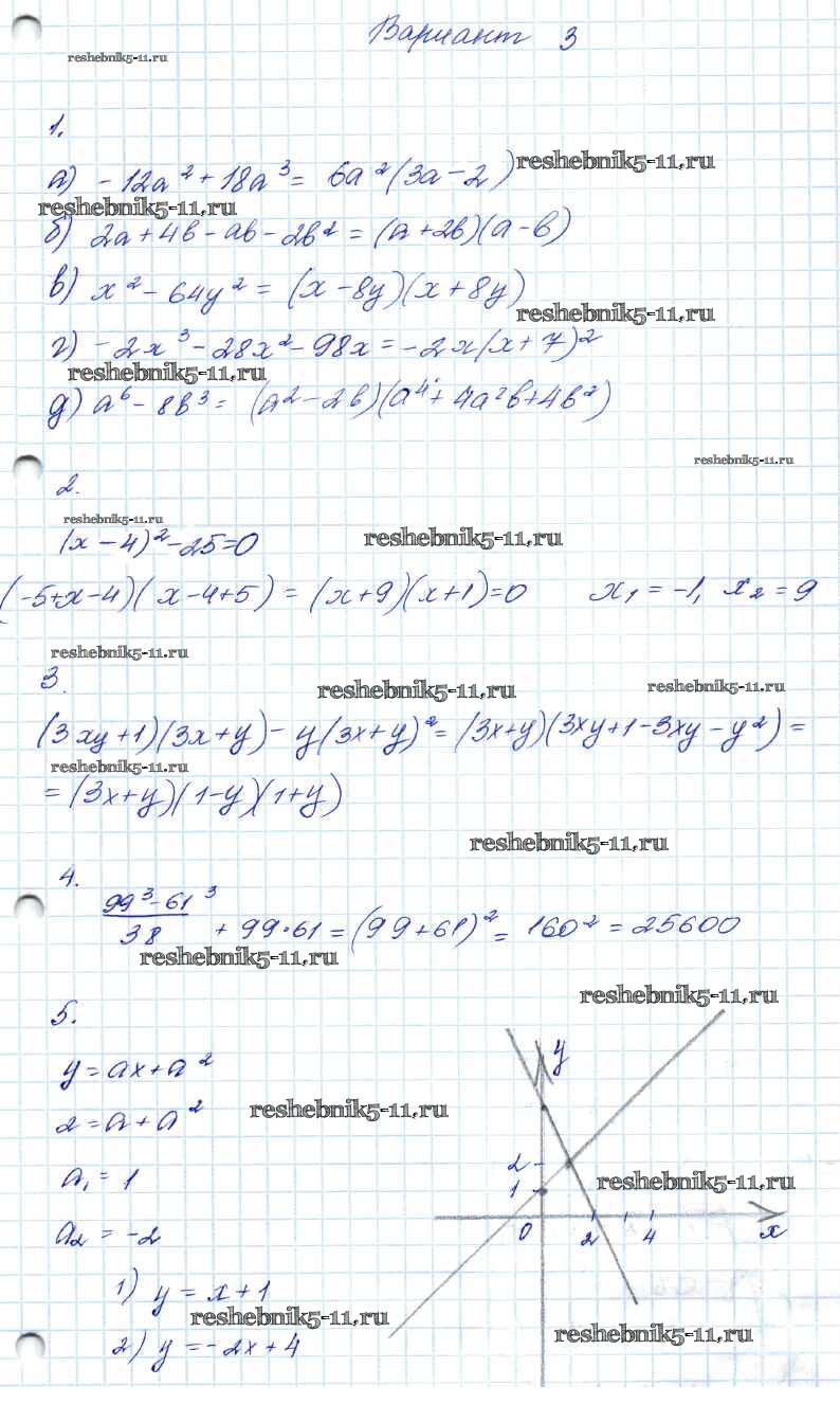 Готовая домашняя работа с ответами по Алгебре за 7, 8, 9 класс Мордкович Контрольные работы Углубленный уровень Мнемозина 2016 ФГОС - КР-7. Варианты 3