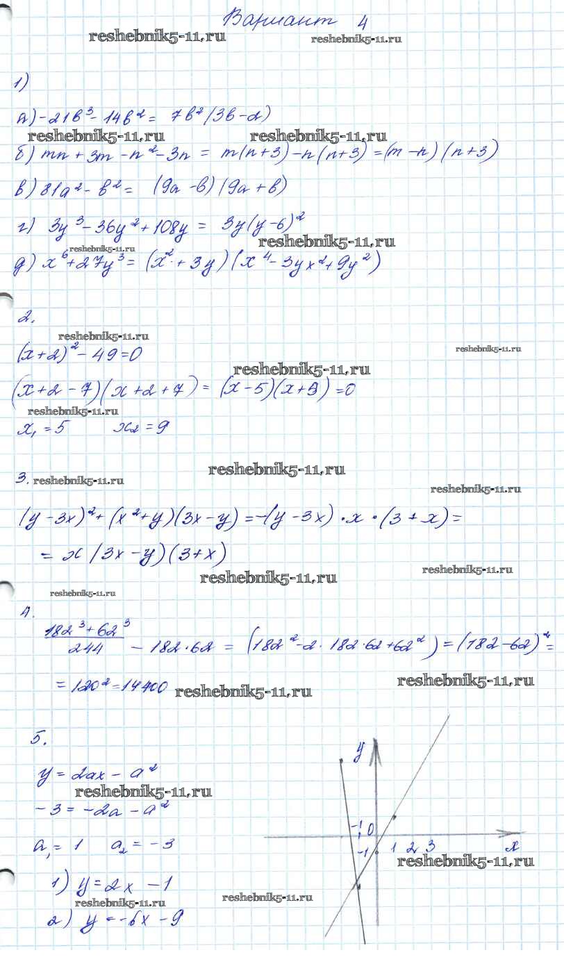 Готовая домашняя работа с ответами по Алгебре за 7, 8, 9 класс Мордкович Контрольные работы Углубленный уровень Мнемозина 2016 ФГОС - КР-7. Варианты 4