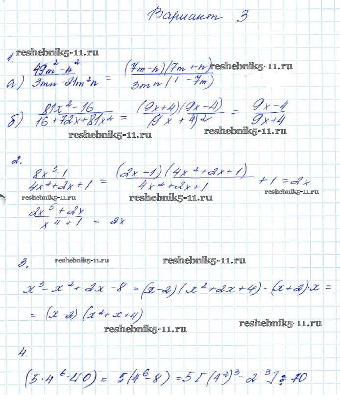 Готовая домашняя работа с ответами по Алгебре за 7, 8, 9 класс Мордкович Контрольные работы Углубленный уровень Мнемозина 2016 ФГОС - КР-8. Варианты 3