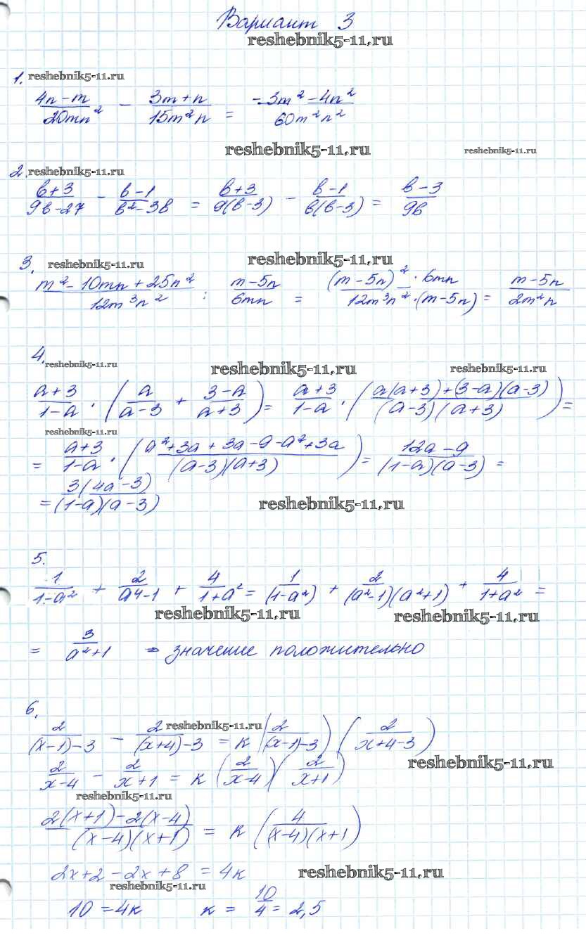 Готовая домашняя работа с ответами по Алгебре за 7, 8, 9 класс Мордкович Контрольные работы Углубленный уровень Мнемозина 2016 ФГОС - КР-1. Варианты 3