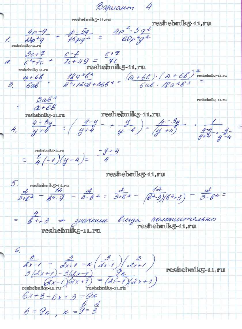 Готовая домашняя работа с ответами по Алгебре за 7, 8, 9 класс Мордкович Контрольные работы Углубленный уровень Мнемозина 2016 ФГОС - КР-1. Варианты 4