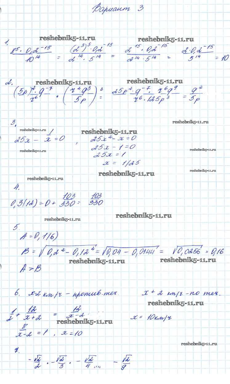 Готовая домашняя работа с ответами по Алгебре за 7, 8, 9 класс Мордкович Контрольные работы Углубленный уровень Мнемозина 2016 ФГОС - КР-2. Варианты 3