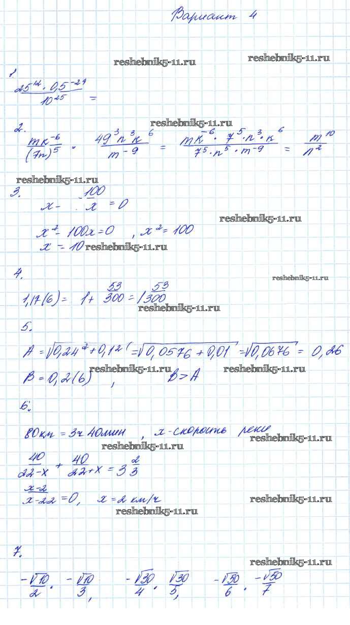 Готовая домашняя работа с ответами по Алгебре за 7, 8, 9 класс Мордкович Контрольные работы Углубленный уровень Мнемозина 2016 ФГОС - КР-2. Варианты 4