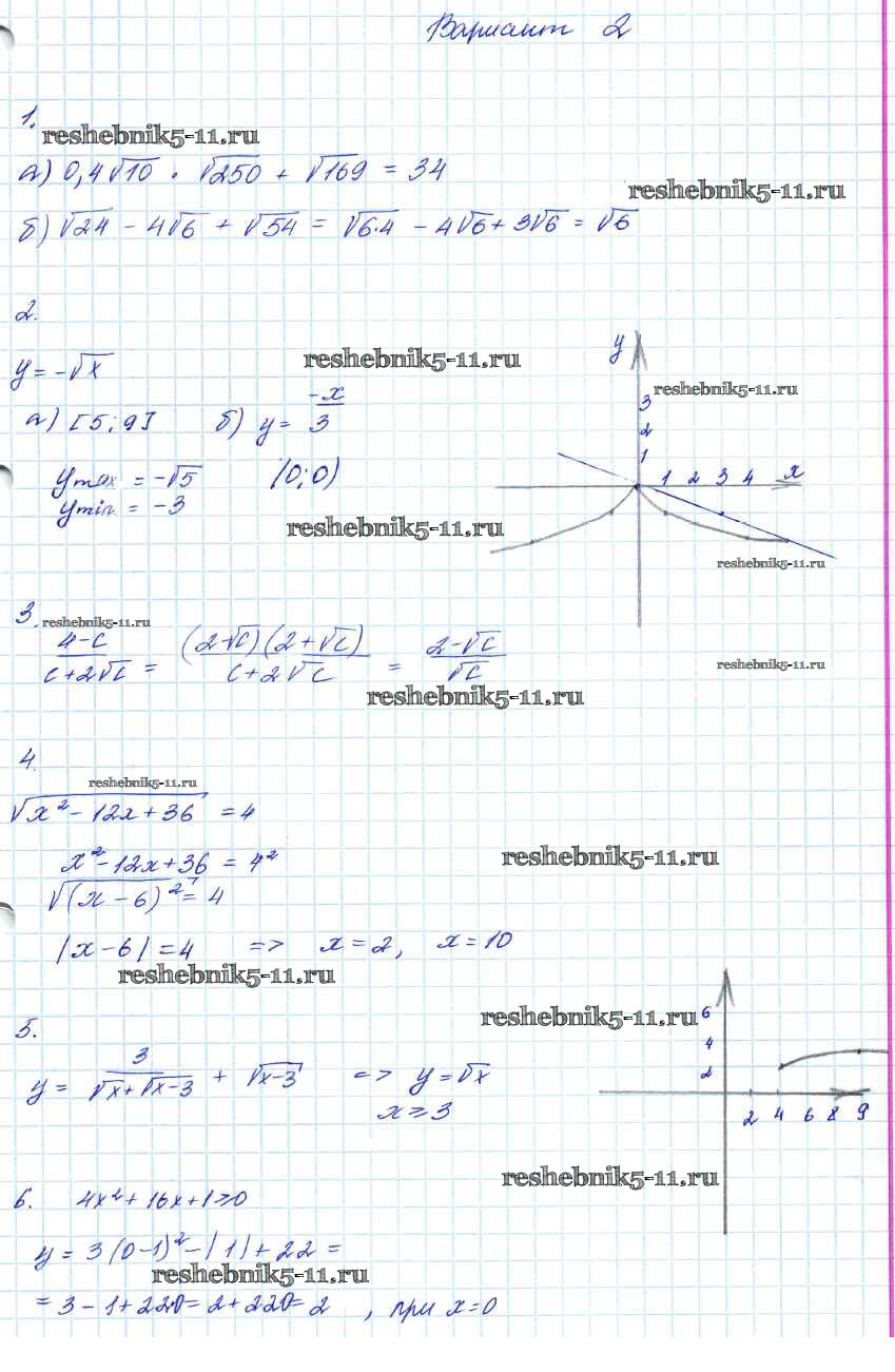 Готовая домашняя работа с ответами по Алгебре за 7, 8, 9 класс Мордкович Контрольные работы Углубленный уровень Мнемозина 2016 ФГОС - КР-3. Варианты 2