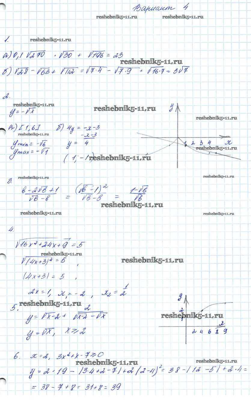 Готовая домашняя работа с ответами по Алгебре за 7, 8, 9 класс Мордкович Контрольные работы Углубленный уровень Мнемозина 2016 ФГОС - КР-3. Варианты 4