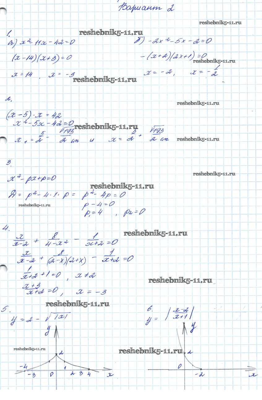 Готовая домашняя работа с ответами по Алгебре за 7, 8, 9 класс Мордкович Контрольные работы Углубленный уровень Мнемозина 2016 ФГОС - КР-5. Варианты 2