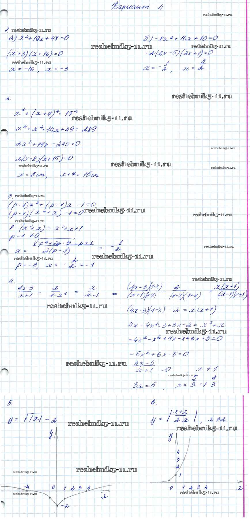 Готовая домашняя работа с ответами по Алгебре за 7, 8, 9 класс Мордкович Контрольные работы Углубленный уровень Мнемозина 2016 ФГОС - КР-5. Варианты 4
