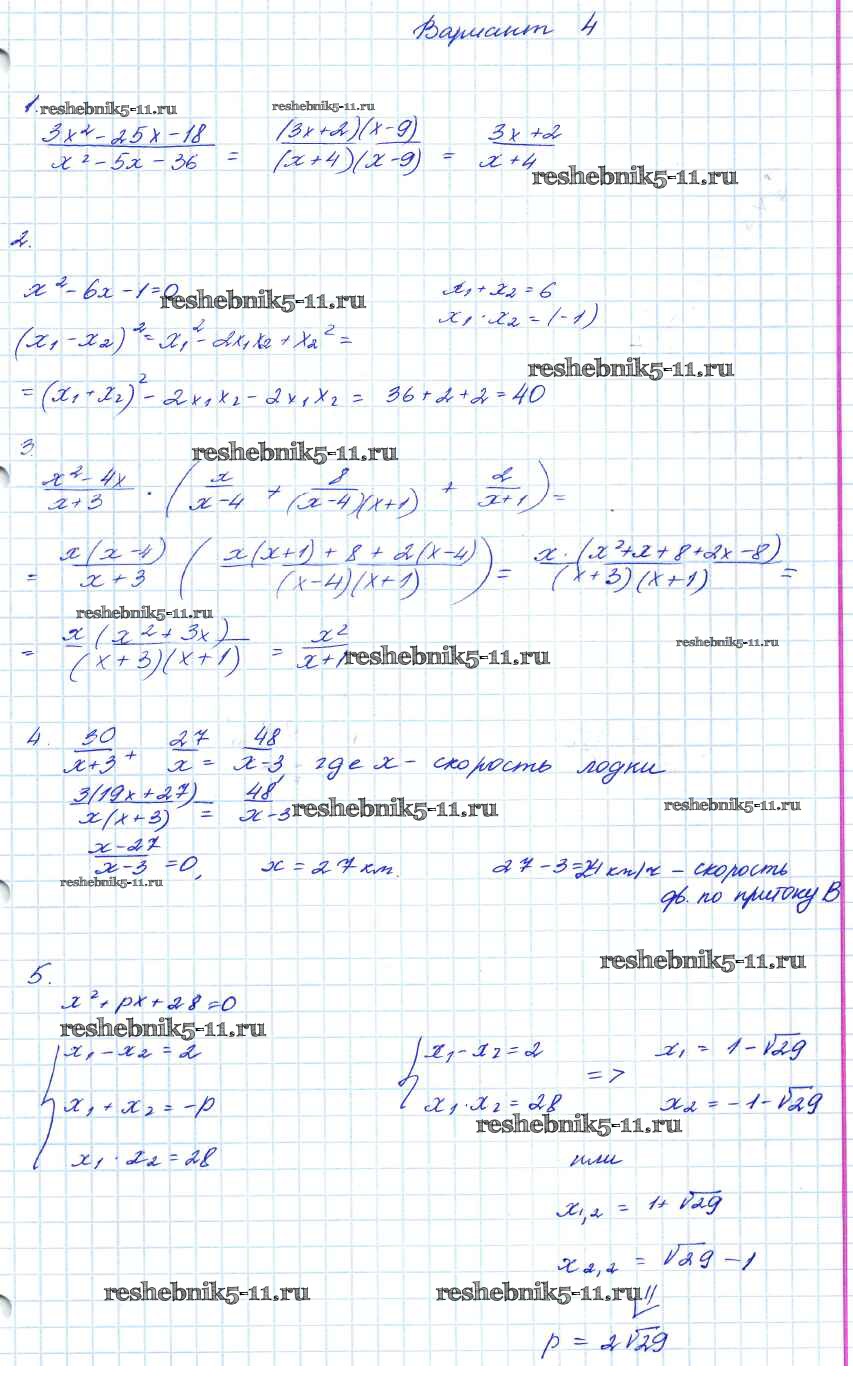 Готовая домашняя работа с ответами по Алгебре за 7, 8, 9 класс Мордкович Контрольные работы Углубленный уровень Мнемозина 2016 ФГОС - КР-6. Варианты 4