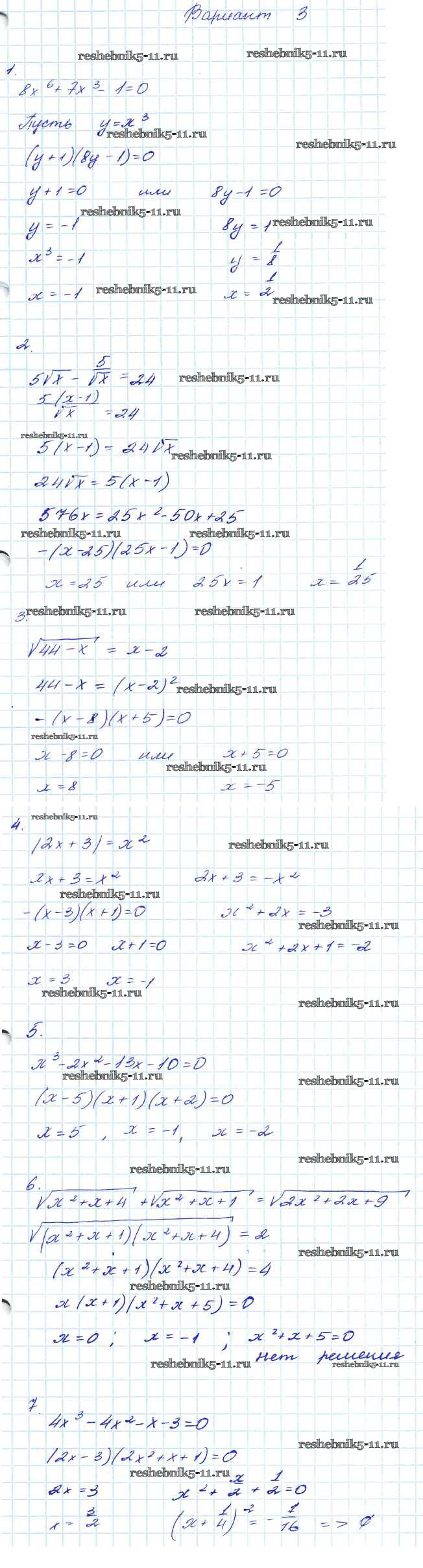 Готовая домашняя работа с ответами по Алгебре за 7, 8, 9 класс Мордкович Контрольные работы Углубленный уровень Мнемозина 2016 ФГОС - КР-8. Варианты 3