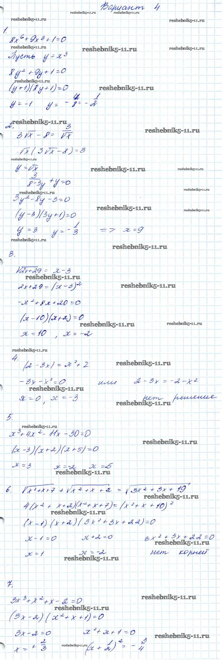 Готовая домашняя работа с ответами по Алгебре за 7, 8, 9 класс Мордкович Контрольные работы Углубленный уровень Мнемозина 2016 ФГОС - КР-8. Варианты 4