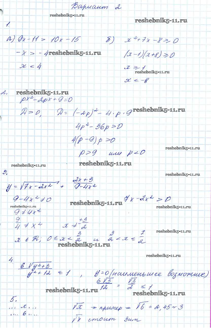 Готовая домашняя работа с ответами по Алгебре за 7, 8, 9 класс Мордкович Контрольные работы Углубленный уровень Мнемозина 2016 ФГОС - КР-9. Варианты 2