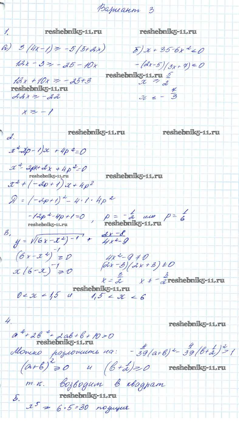 Готовая домашняя работа с ответами по Алгебре за 7, 8, 9 класс Мордкович Контрольные работы Углубленный уровень Мнемозина 2016 ФГОС - КР-9. Варианты 3