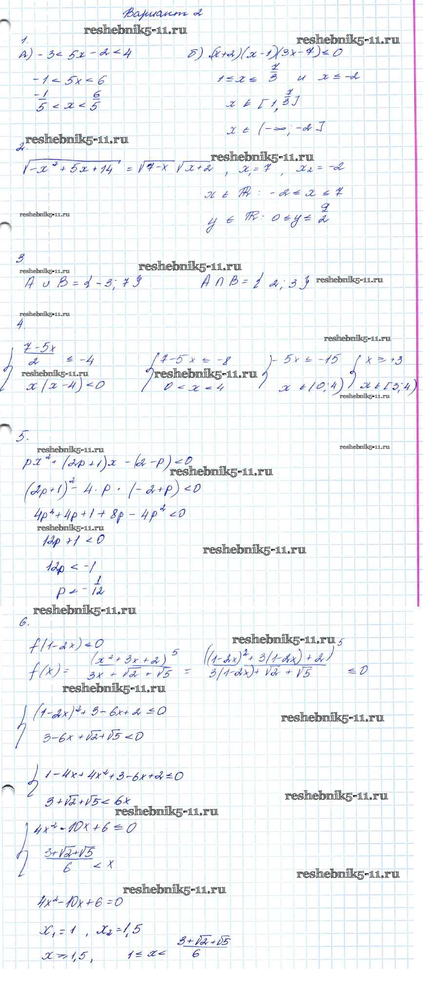 Готовая домашняя работа с ответами по Алгебре за 7, 8, 9 класс Мордкович Контрольные работы Углубленный уровень Мнемозина 2016 ФГОС - КР-1. Варианты 2
