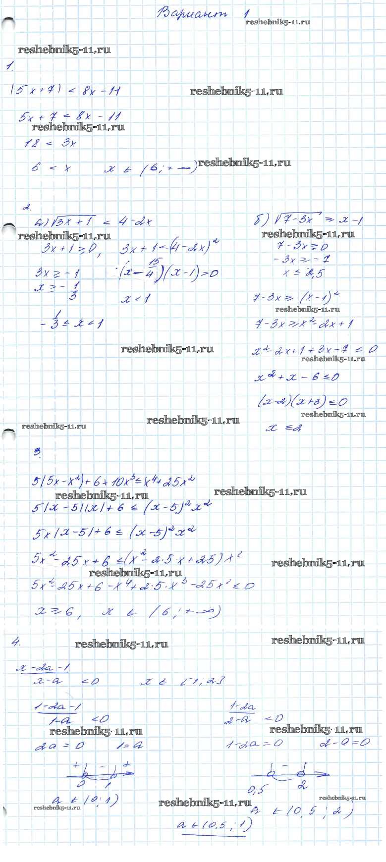 Готовая домашняя работа с ответами по Алгебре за 7, 8, 9 класс Мордкович Контрольные работы Углубленный уровень Мнемозина 2016 ФГОС - КР-2. Варианты 1