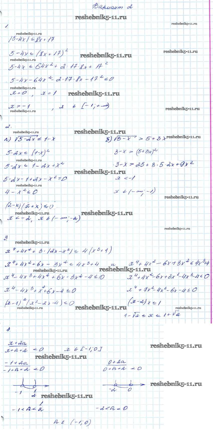Готовая домашняя работа с ответами по Алгебре за 7, 8, 9 класс Мордкович Контрольные работы Углубленный уровень Мнемозина 2016 ФГОС - КР-2. Варианты 2