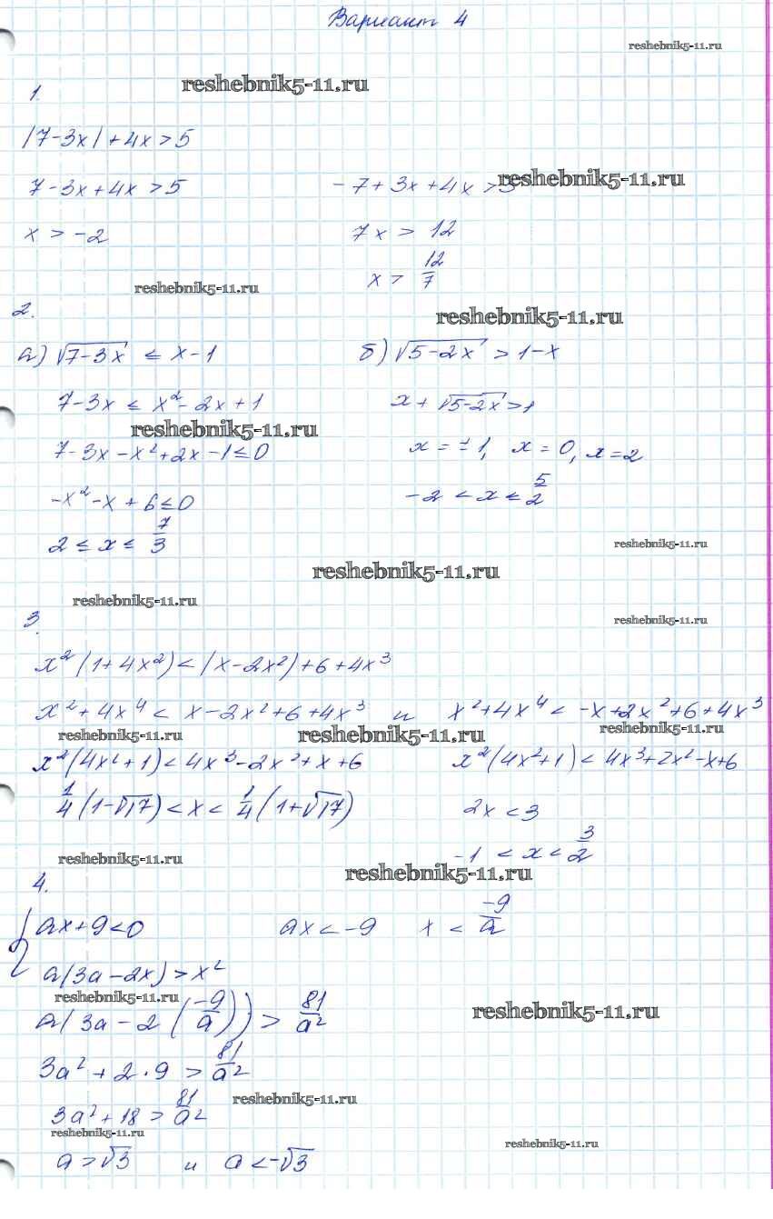 Готовая домашняя работа с ответами по Алгебре за 7, 8, 9 класс Мордкович Контрольные работы Углубленный уровень Мнемозина 2016 ФГОС - КР-2. Варианты 4