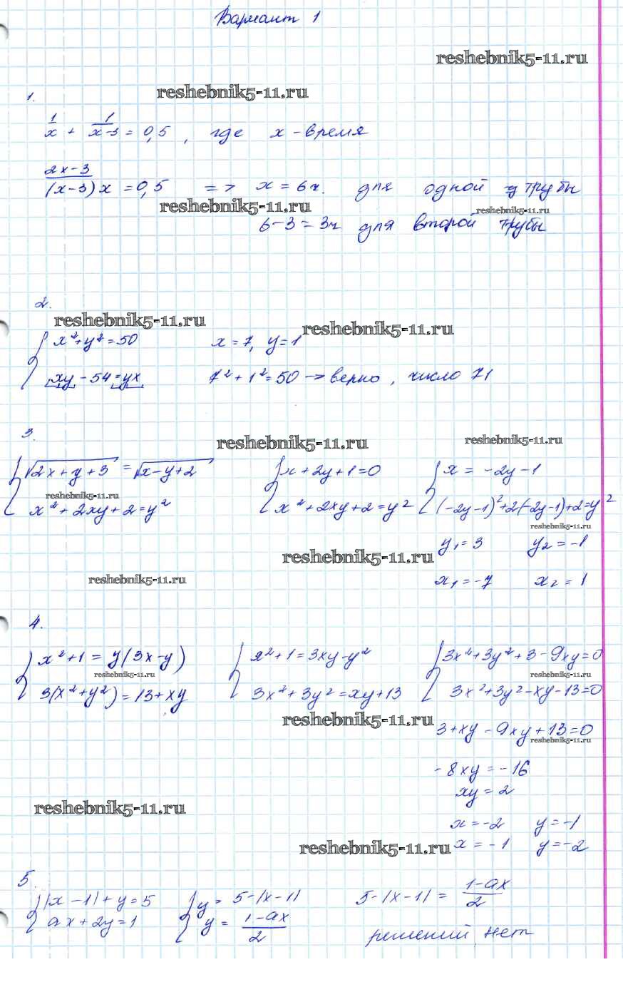 Готовая домашняя работа с ответами по Алгебре за 7, 8, 9 класс Мордкович Контрольные работы Углубленный уровень Мнемозина 2016 ФГОС - КР-4. Варианты 1