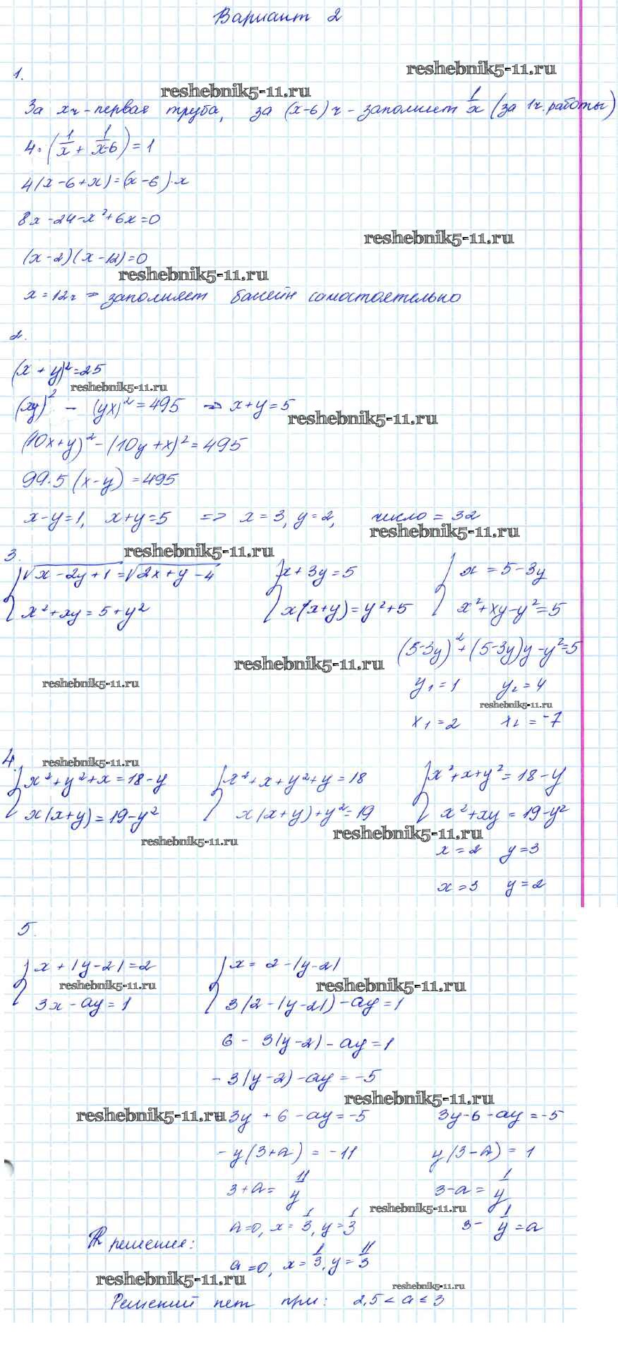 Готовая домашняя работа с ответами по Алгебре за 7, 8, 9 класс Мордкович Контрольные работы Углубленный уровень Мнемозина 2016 ФГОС - КР-4. Варианты 2