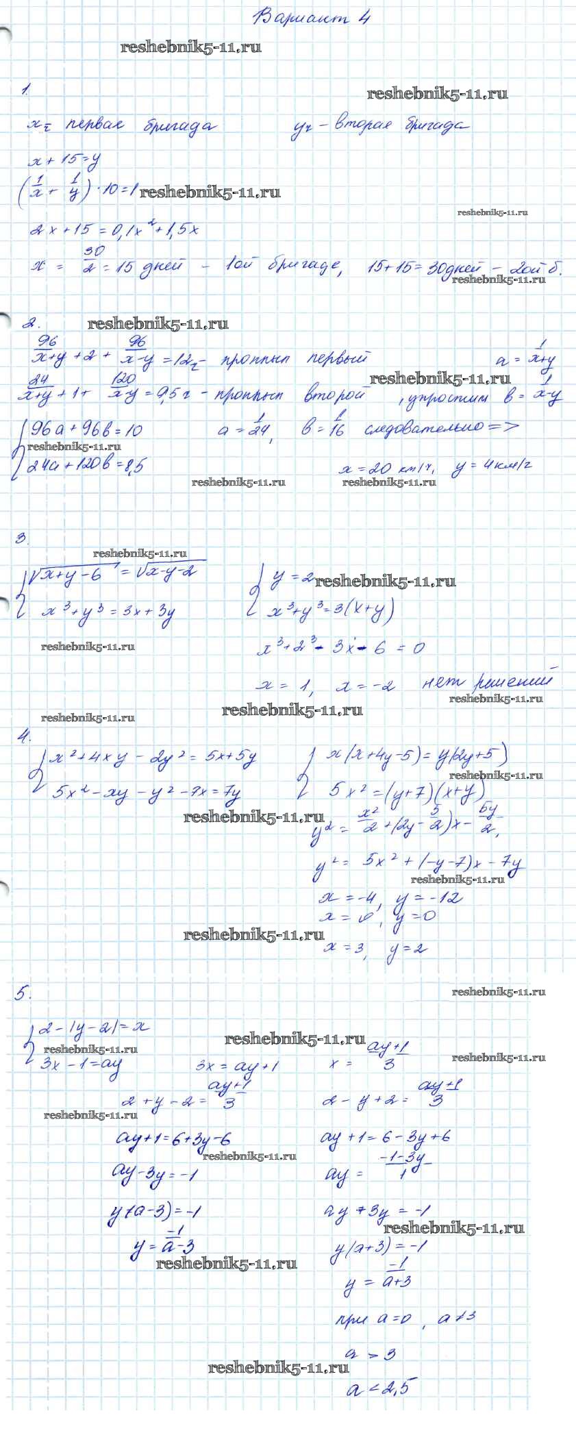 Готовая домашняя работа с ответами по Алгебре за 7, 8, 9 класс Мордкович Контрольные работы Углубленный уровень Мнемозина 2016 ФГОС - КР-4. Варианты 4