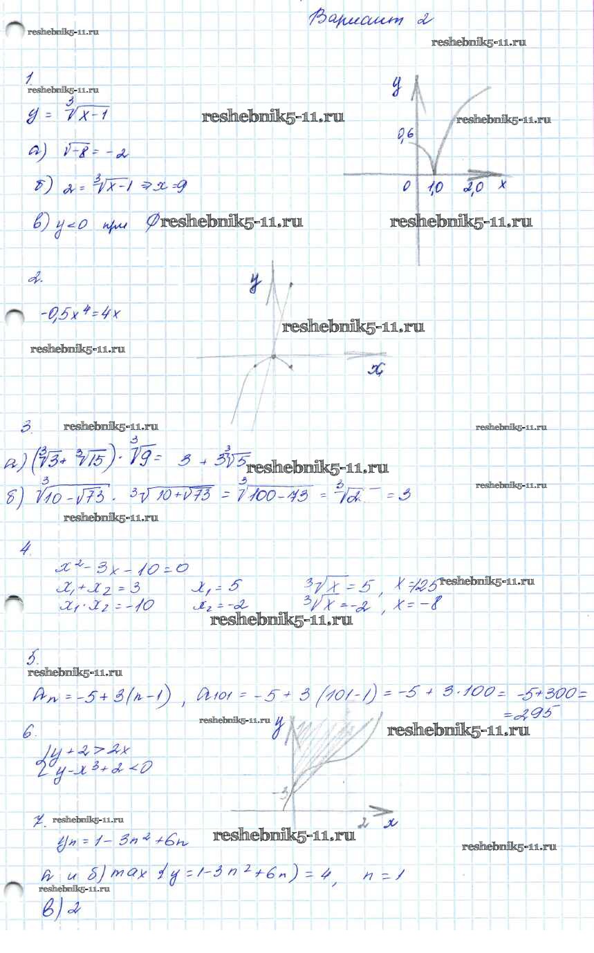 Готовая домашняя работа с ответами по Алгебре за 7, 8, 9 класс Мордкович Контрольные работы Углубленный уровень Мнемозина 2016 ФГОС - КР-6. Варианты 2