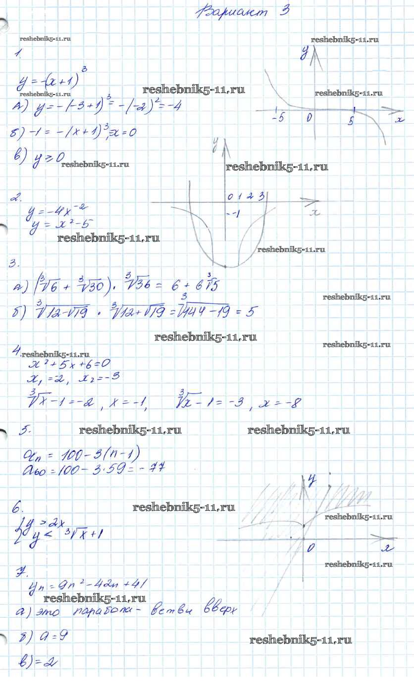 Готовая домашняя работа с ответами по Алгебре за 7, 8, 9 класс Мордкович Контрольные работы Углубленный уровень Мнемозина 2016 ФГОС - КР-6. Варианты 3