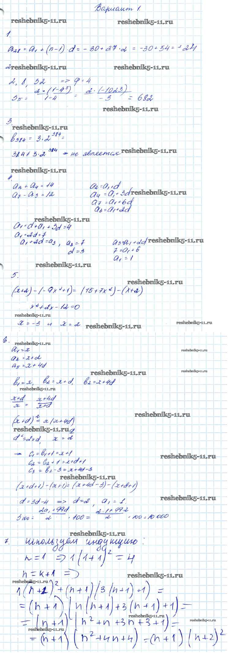Готовая домашняя работа с ответами по Алгебре за 7, 8, 9 класс Мордкович Контрольные работы Углубленный уровень Мнемозина 2016 ФГОС - КР-7. Варианты 1