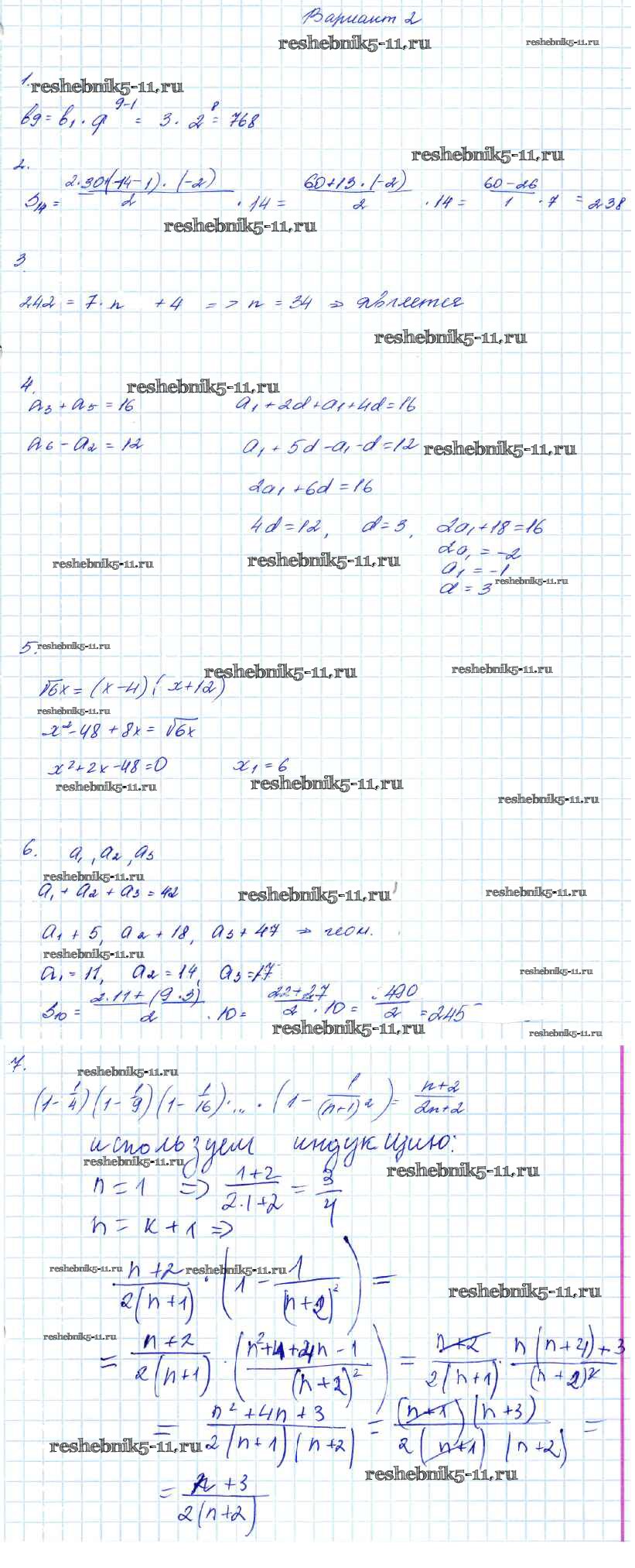 Готовая домашняя работа с ответами по Алгебре за 7, 8, 9 класс Мордкович Контрольные работы Углубленный уровень Мнемозина 2016 ФГОС - КР-7. Варианты 2